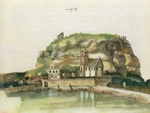 Una mención especial merece el autor Fedja Anzelewsky, conocido por sus múltiples ensayos sobre Durero, principalmente por su libro Durero, su arte y vida publicado en 1981 por Alpine Fine Arts Collections, New York. En el capítulo III, Journeying Years: 1490-5, expone el recorrido de Durero durante la otoño del año 1494 con motivo del nuevo brote de la peste en Nuremberg ya mencionado anteriormente. Dice: parece que al llegar a Innsbruck pintó dos acuarelas del patio del Castillo, y luego continuó hacia el sur cruzando el Brenner y el valle de Eisack, para voltear al este llegando a Trento, ya a un paso de Venecia (3). Cuenta sobre la importancia de Venecia y sus 100,000 habitantes en la època, datos que hemos tocado en la entrada No.6 del mes de mayo del año pasado, así como de los alemanes establecidos en la ciudad gracias al importante movimiento comercial con esa región cuyas negociaciones se realizaban en el Fondaco dei Tedeschi, a escasos metros del Rialto sobre el Gran Canal. El año en que Durero llega en su primer viaje a Venecia, los dos cónsules representantes de Nuremberg pertenecían a la familia patricia Imhoff de dicha ciudad, por lo que se deduce que el contacto informal con artistas venecianos, pudo haberse dado por su mediación o la de los comerciantes.