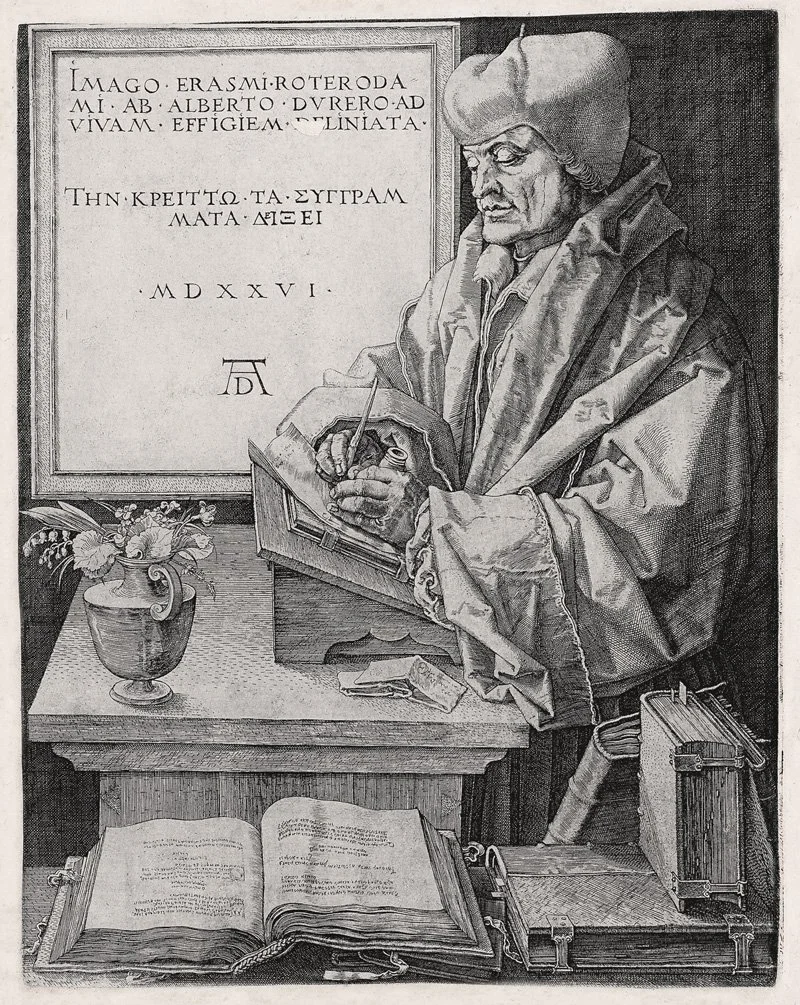 Erasmo de Rotterdam, Alberto Durero (1526). Grabado. 249 x 194 mm.
